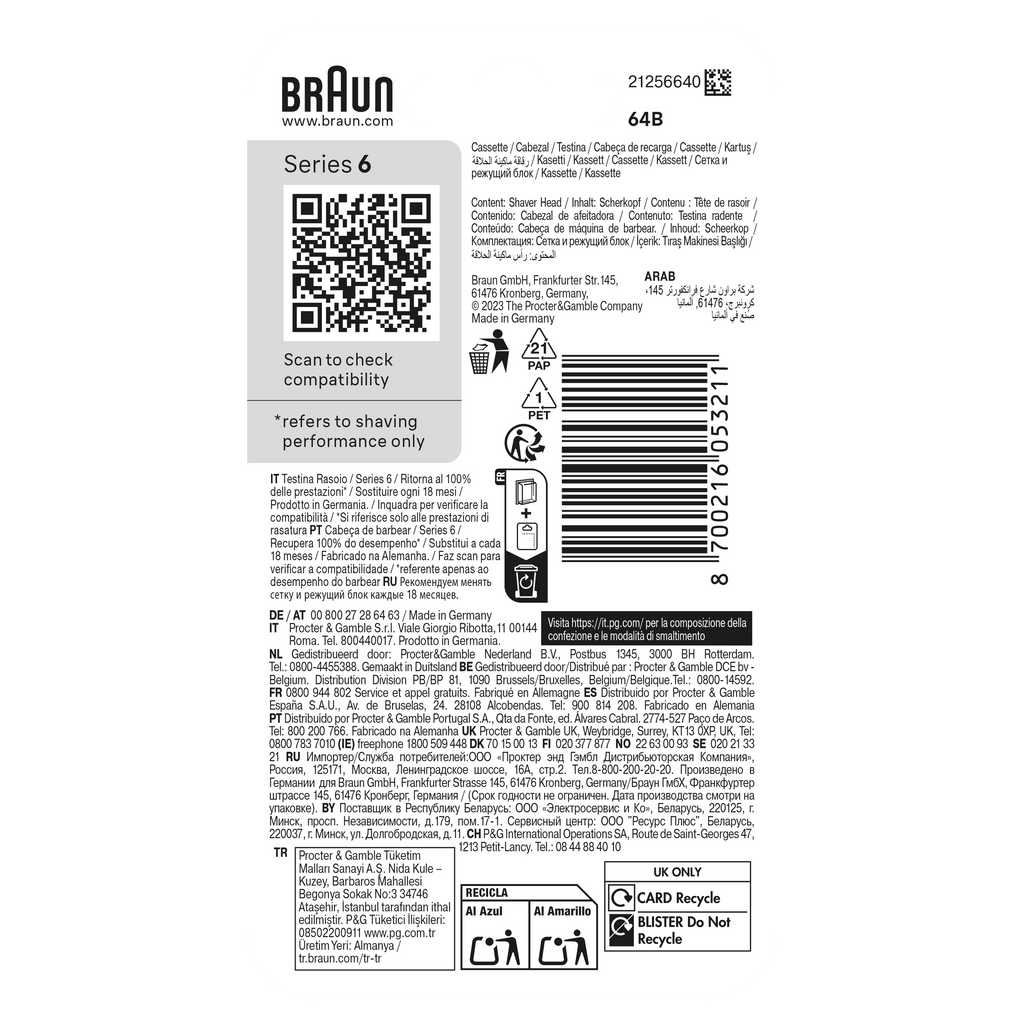 Braun 64B Series 6 Electric Shaver Replacement Head, Compatible With 60, 61, 62 Generations Shavers, Made in Germany