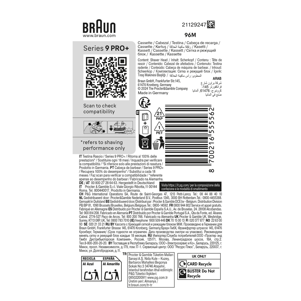 The average Braun shaver cuts 6 million hairs every 18 months. This means the head will gradually wear out and your shave can become less close and comfortable. That's why Braun recommends changing your shaver's foil & cutter block every 18 months to get your shaver back to its best. Take care of your shaver, and it will take care of you. Box includes: 1 X ORIGINAL Shaver Head Replacement.