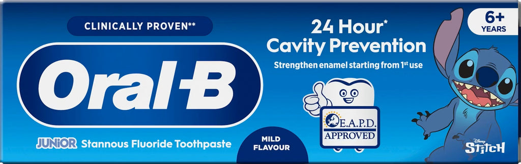 The Oral-B Junior 6+ Toothpaste is developed with dentists to help prevent cavities. Oral-B Kids 6+ Toothpastes are specially designed to protect teeth against acids from sugars in everyday food. For healthy and strong teeth, this sugar free toothpaste with mild mint is specially designed for grown-up juniors.